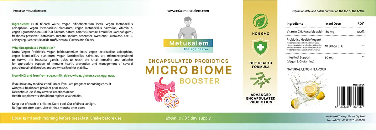 Research has shown that maintaining a diverse and balanced gut microbiota is essential for supporting immune health, regulating inflammation, and promoting optimal digestion and nutrient absorption. By incorporating our Vegan Micro Biome Booster into your daily regimen, you can nurture a thriving gut ecosystem and strengthen your body's natural defences against pathogens and environmental stressors.